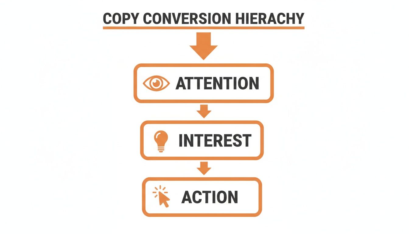 The hierarchy of these metrics shapes your entire strategy, from copy to creative. This visual breaks down how effective copy moves a user from awareness to a measurable action.