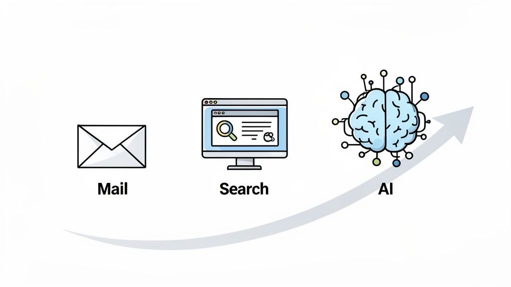It might sound archaic, but that analog approach set a high bar for performance. Direct mail still boasts an impressive ROI, with some studies showing returns of 112%, often outperforming digital channels. It provides a tangible baseline for what "good" performance means. You can dive deeper into these numbers in this full advertising market analysis.