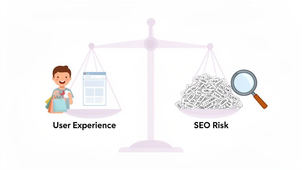 The result? Your site's authority gets watered down. All the ranking power that should be concentrated on your core category pages gets spread thinly across a sea of junk URLs, causing your entire site to look less credible in Google's eyes.