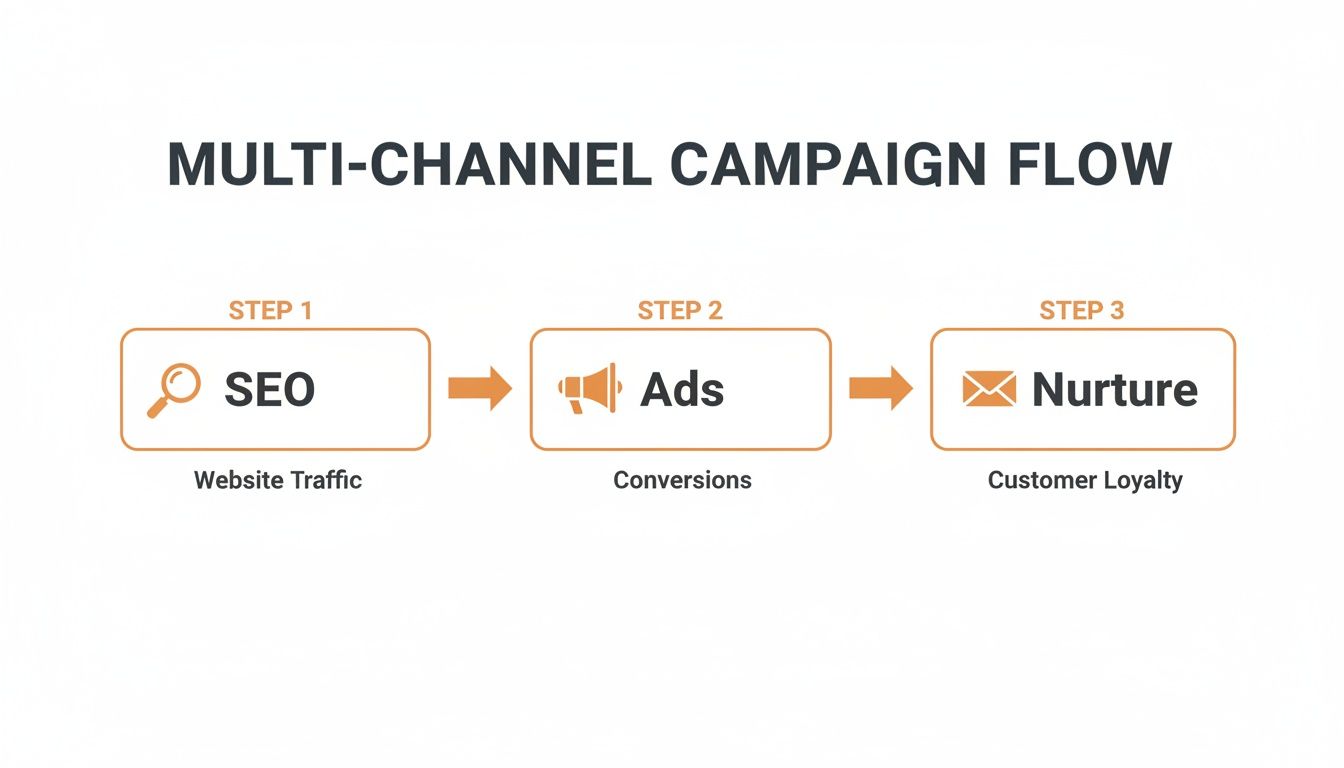 This isn't about being everywhere at once; that’s a good way to burn budget. It’s about being in the right places with a strategy that makes each channel more powerful together. The goal is a seamless flow that guides potential customers from first interaction to sale.