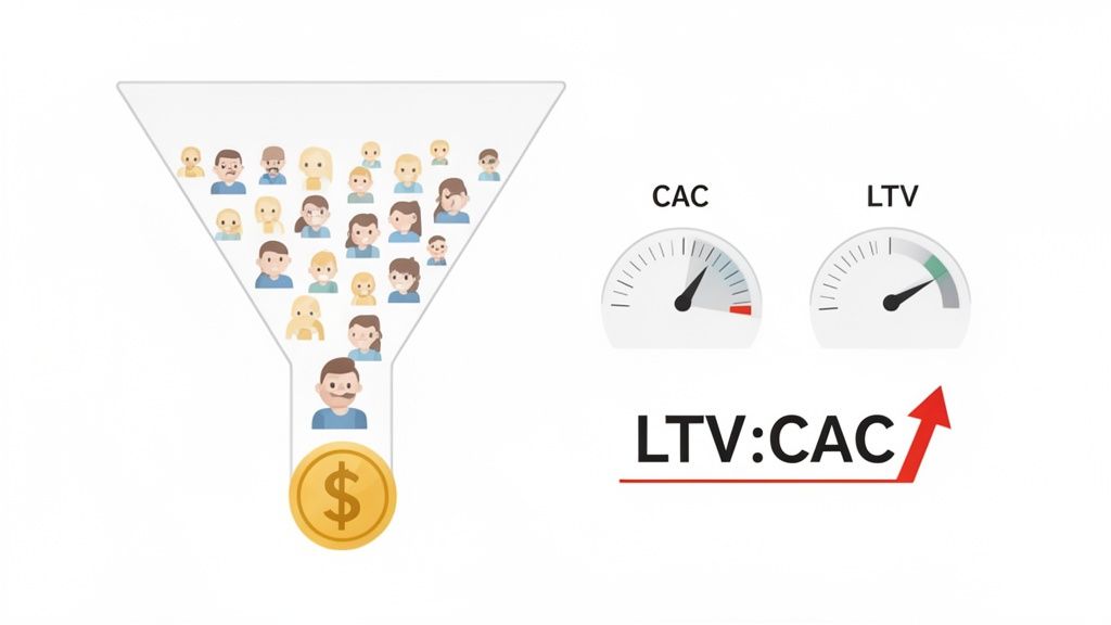 The real insight comes from the LTV:CAC ratio. For a SaaS company, a healthy ratio is typically 3:1 or better. This signals a profitable, sustainable acquisition model. If LTV is lower than CAC, you're paying to lose money on every new customer.