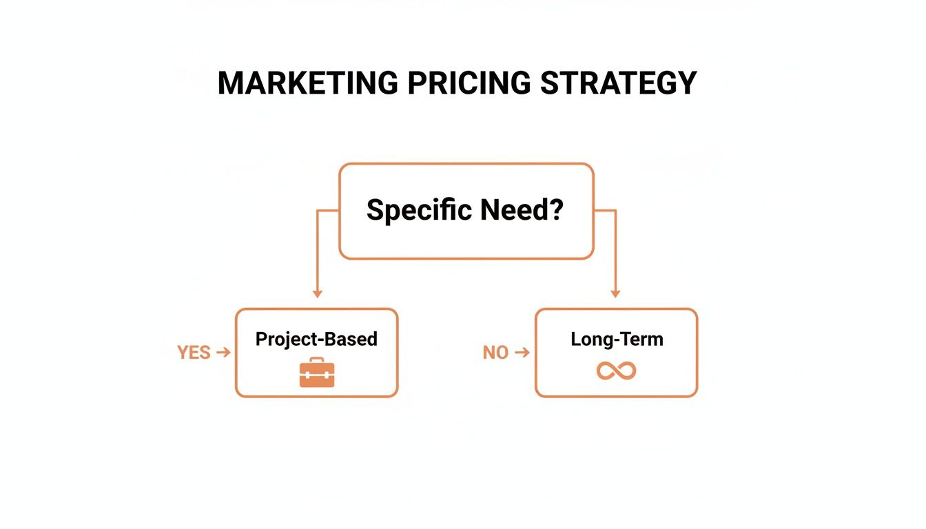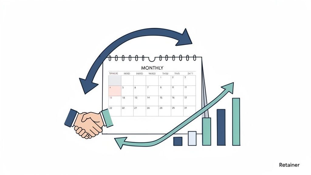 Key Insight: Your choice of pricing model is a strategic decision that signals your priorities. A retainer prioritizes a long-term partnership, while a performance model prioritizes immediate, quantifiable results.