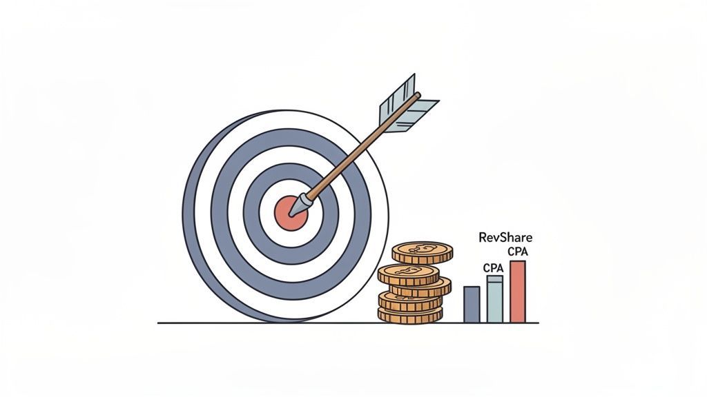 Performance-based agreements must be built around the specific metrics that drive your business forward. The most common structures are Cost Per Lead (CPL), Cost Per Acquisition (CPA), and Revenue Share, each suited to different business contexts.