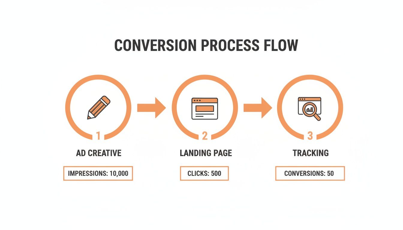 This entire flow is an interconnected system. A weak ad creative kills your CTR, a confusing landing page destroys your conversion rate, and broken tracking leaves you blind. You have to optimize the whole system, not just one part.