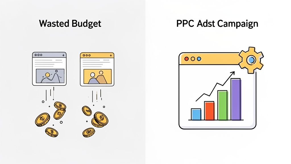 Effective PPC ad campaign management isn’t about "running ads." It's a strategic system for overseeing and optimizing paid advertising to hit specific business outcomes—like generating qualified leads or driving profitable sales. It’s the critical difference between burning cash and building a predictable revenue engine.