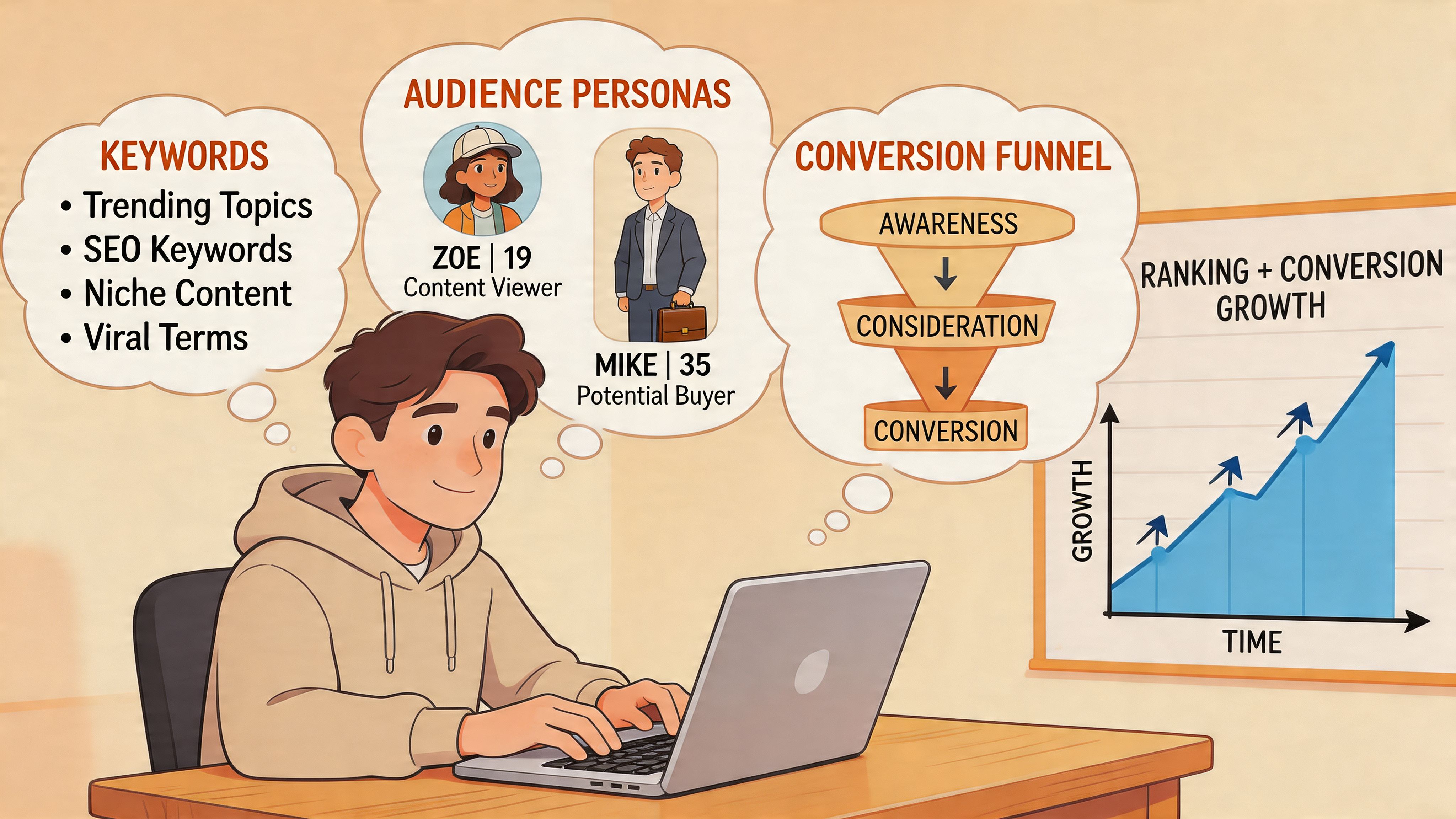 Map search intent and buyer intent together. Split pages by audience, offer, funnel stage, and business value. Every page needs a job. Rank, convert, support a sale, or build trust.