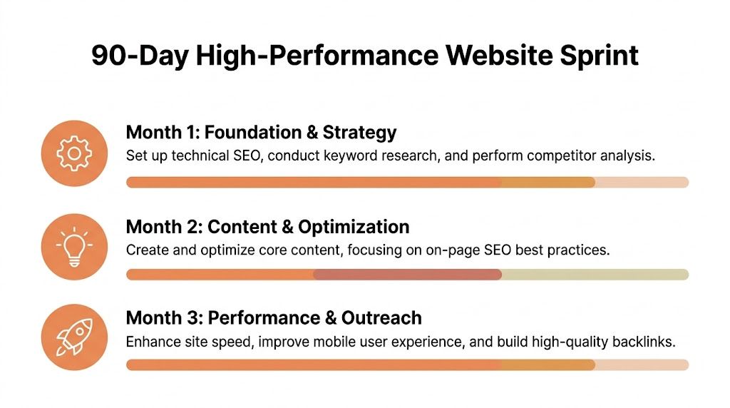 A high-performance seo friendly website is never finished. It should become productive within 90 days if you manage it like an acquisition asset instead of a branding artifact.