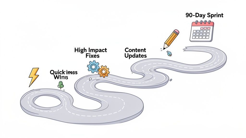 A successful roadmap is not just a list of fixes; it's a strategic sequence of actions. By tackling the highest-impact items first, you ensure your investment starts generating a return in weeks, not years.