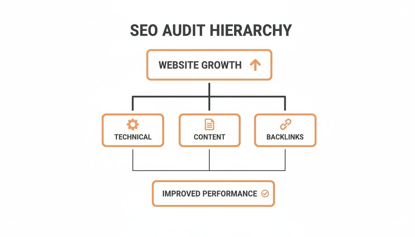 Not all "website SEO audit services" deliver the same value. A cheap, automated scan will flag surface-level issues but miss the strategic "why." A comprehensive audit is a strategic deep dive that analyzes the interconnected pillars of your website's performance.